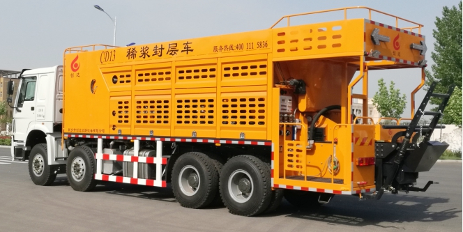 該設(shè)備采用機(jī)、電、液、氣一體化操作控制,具有物料按比例摻配精準(zhǔn)、混合料拌和強(qiáng)勁、漿料布料均勻無離析、攤鋪平整一致、低速控制穩(wěn)定等優(yōu)點(diǎn),廣泛應(yīng)用于普通稀漿封層、改性稀漿封層、微表處及車轍修復(fù)等施工工藝中,是目前稀漿封層與微表處施工的理想機(jī)械。